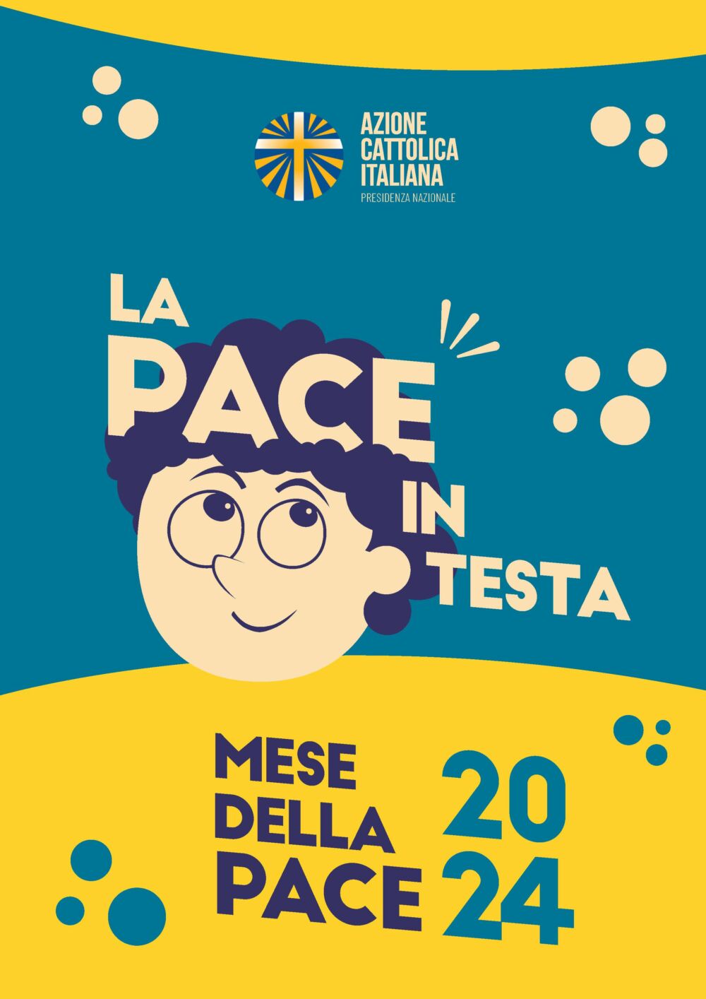 Dato il contesto storico e politico che stiamo affrontando, ci sembra più che doveroso ribadire quanto sia essenziale parlare di pace in questi tempi. Ecco perché, lo slogan del progetto di pace 2024 dell’Azione Cattolica Italiana è “La pace in testa”, che vuole essere il racconto dell’atten-zione primaria che l’associazione ha per la pace: senza pause, senza intervalli, come postura in-dispensabile nelle piccole, come nelle grandi dinamiche. La pace non è un pensiero tra tanti, non è una possibilità, ma il primo punto della lista, il più urgente, che precede gli altri in testa a tutto. Non è solo l’urgenza del momento a imporci tale primato, ma la natura stessa della Chiesa: siamo il popolo a cui Gesù affida la pace.